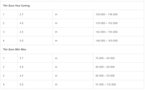 Trung tâm phân phối Tôn Việt gửi tới quý khách hàng bảng báo giá tôn Bluescopes Zacs Hoa Cương công nghệ inok hoặc tôn úc