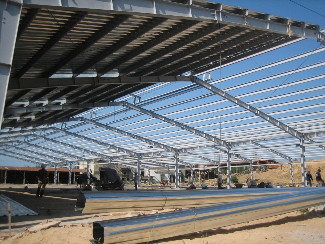 Lắp dựng hệ thống khung thép mái tôn nhà xưởng và thi công hàng rào vách ngăn đảm bảo kín kẽ và an toàn cho công trình phí trong.